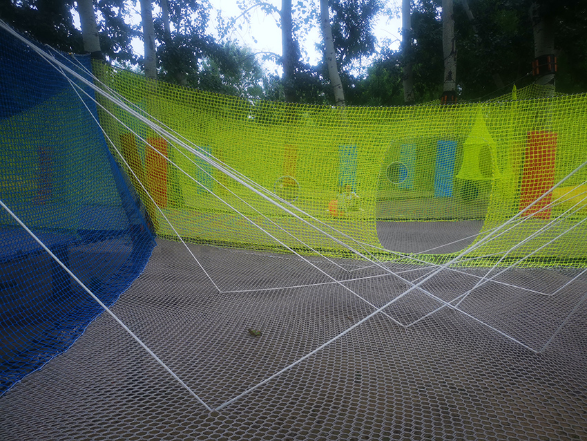 带有绳子拦截的障碍区域,增加玩耍的难度,锻炼孩子们的应对能力。